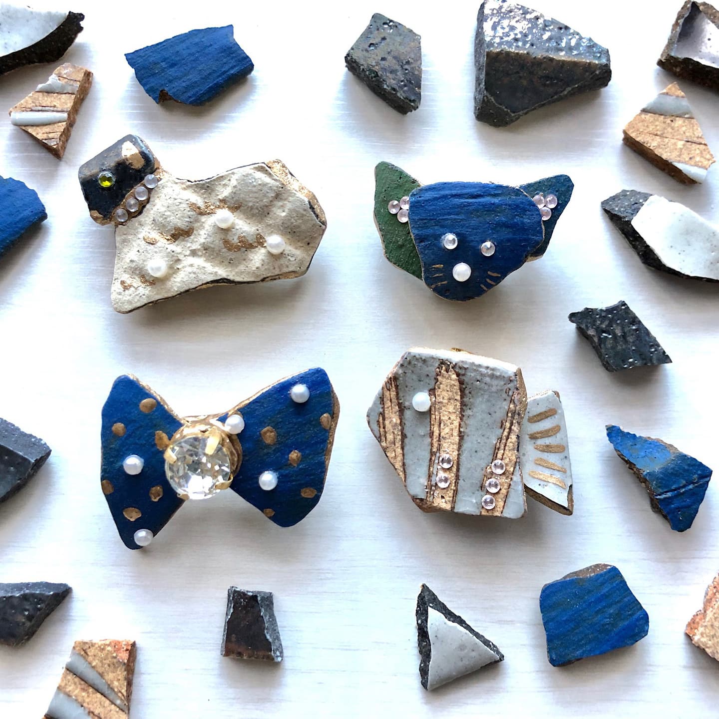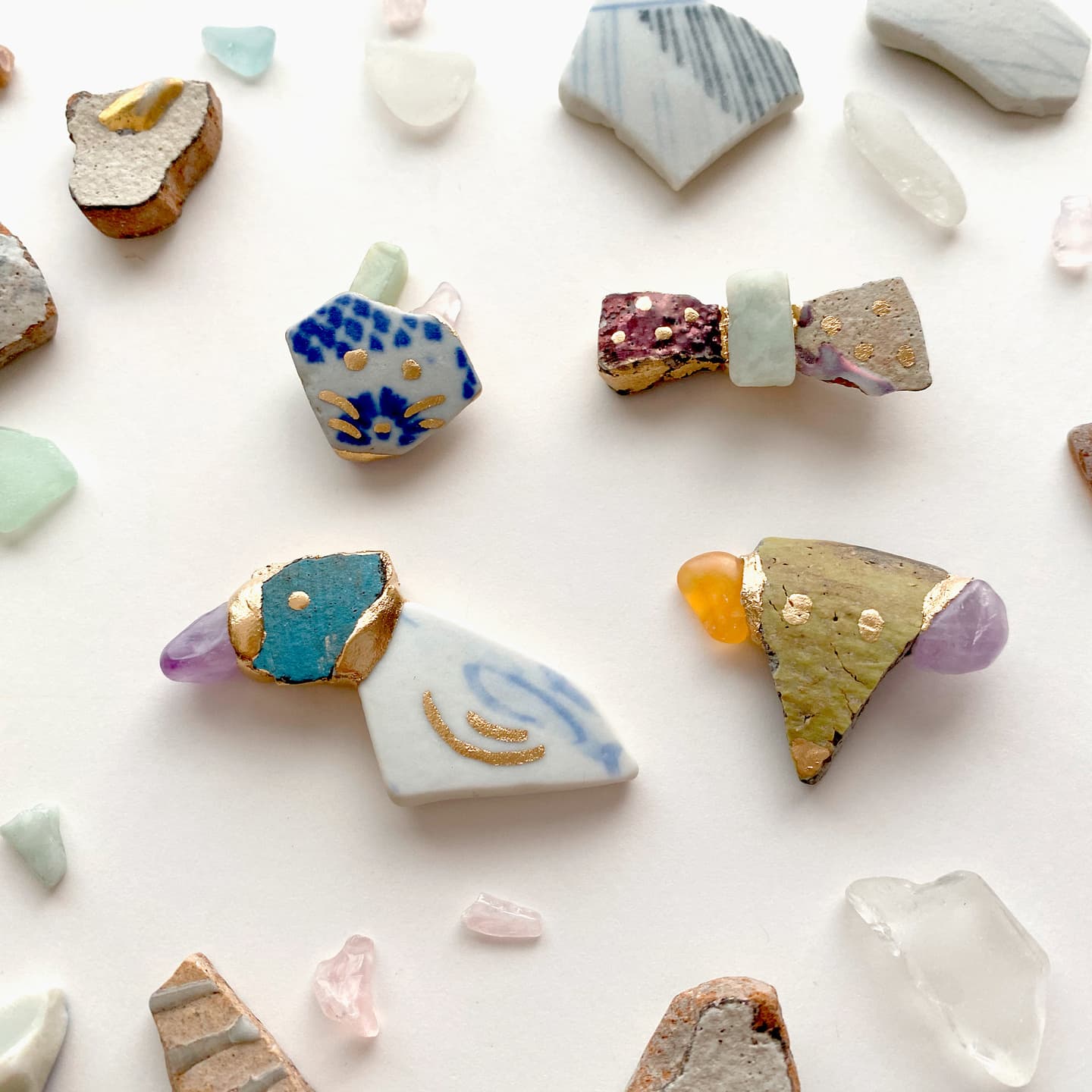 陶片・シーグラス・天然石などを組み合わせて